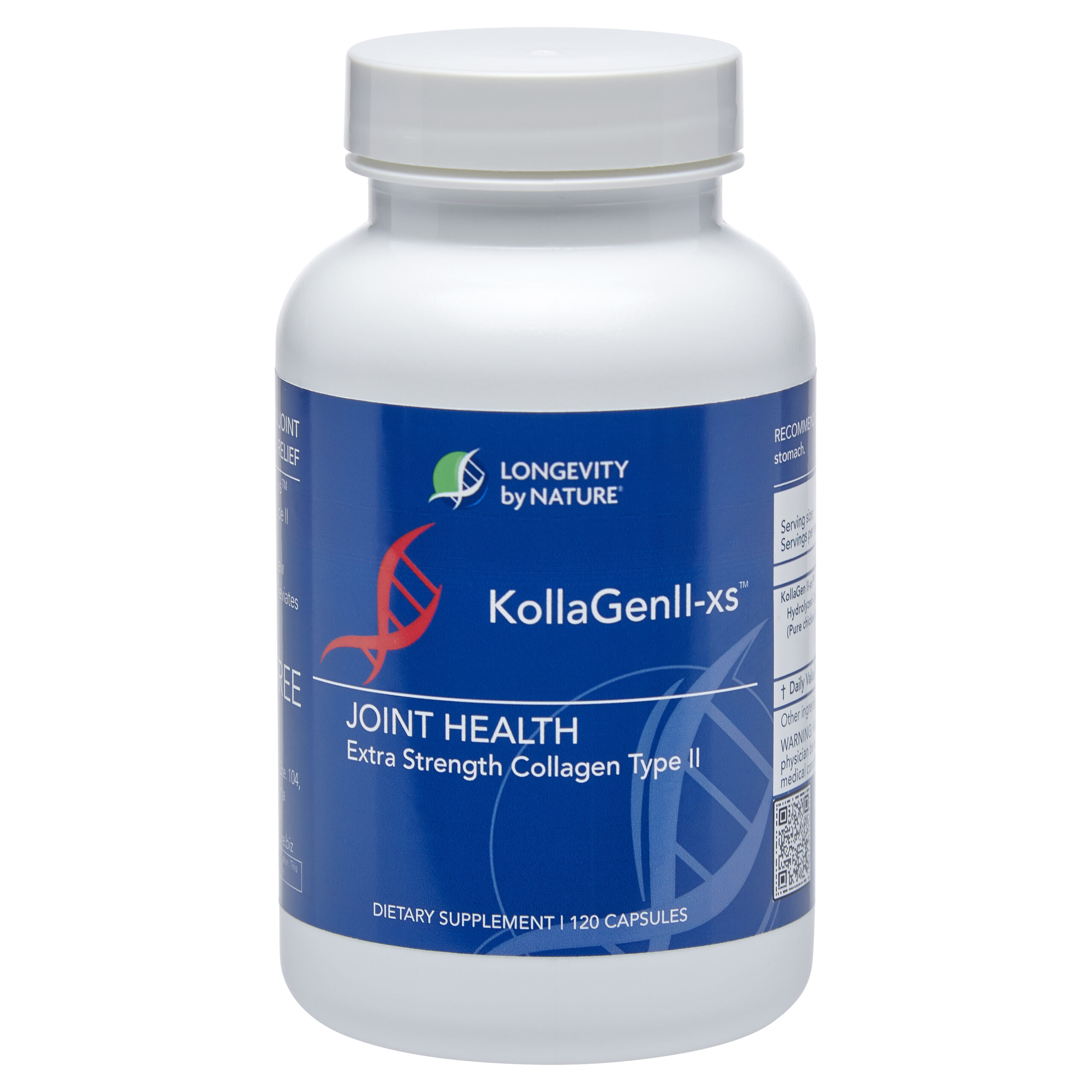 Unlock lasting joint health with KollaGenII-xs™. Clinically-tested collagen type II with naturally-occurring hyaluronic acid, glucosamine, and chondroitin stimulate new cartilage growth, minimize friction, and alleviate joint discomfort. KollaGenII-xs™ is the extra-strength choice for active lifestyles.*